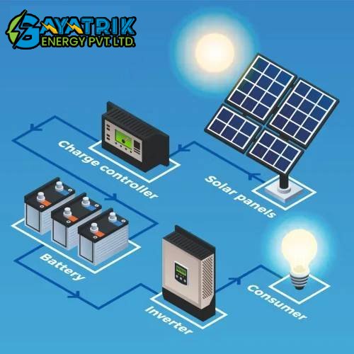 Off grid solar photo-voltaic rooftop system is also known as battery based or stand-alone solar system. In this type of rooftop system, you will get solar battery that allows you to store excess or unconsumed electricity in them. This stored power further can be used at the time when the solar panel is not generating power during night or rainy day.